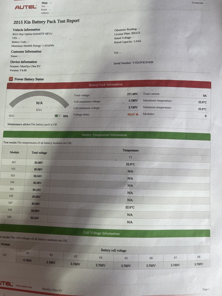 Kia Optima 2011-2017 (Hybrid battery package) part #375114R101 ONLY