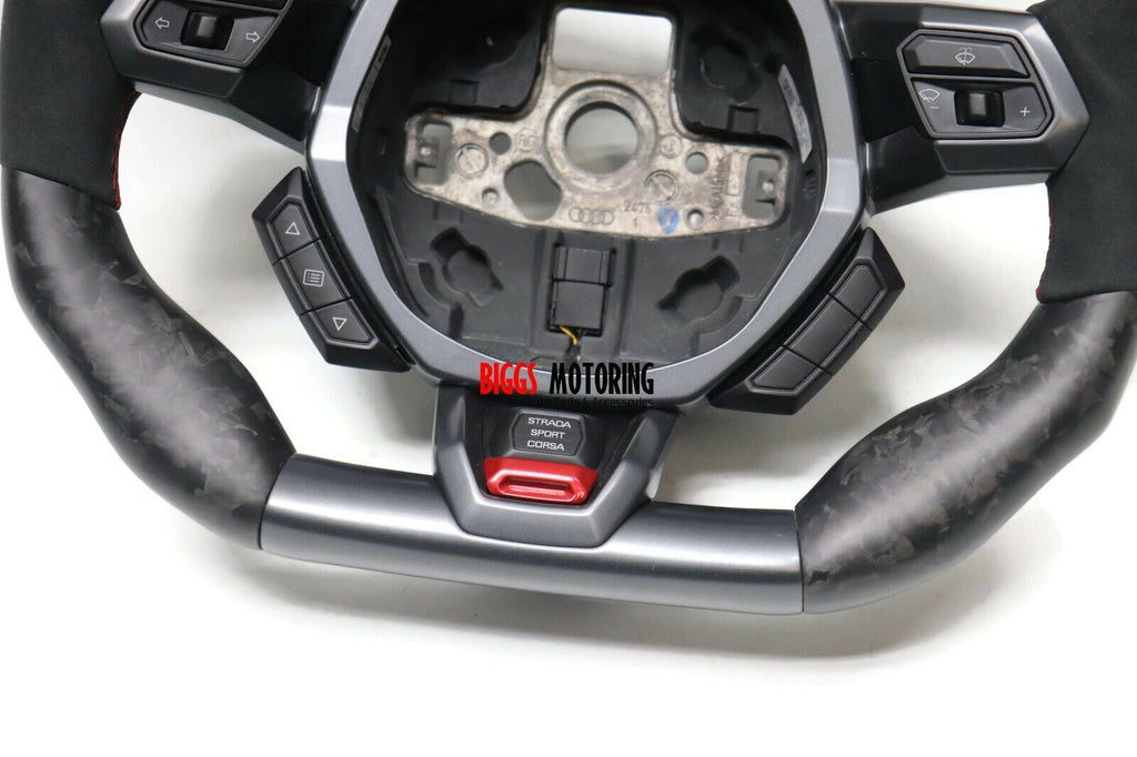 Fits 2016 Huracan Custom Carbon Fiber & Leather Flat Bottom Steering Wheel