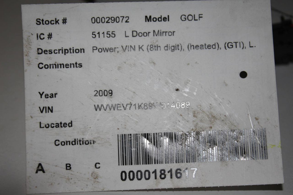 2005-2009 VOLKSWAGEN GOLF DRIVER LEFT SIDE POWER DOOR MIRROR WHITE