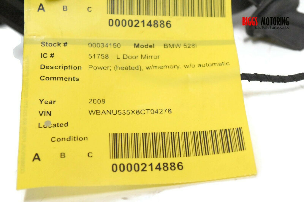 2006-2010 BMW 528i Driver Left Side Power Door Mirror Blue 34150