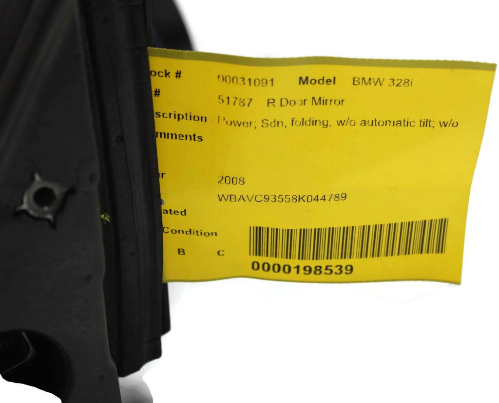 2007-2009 Bmw 328I Passenger Right Side Power Door Mirror Gray 31091