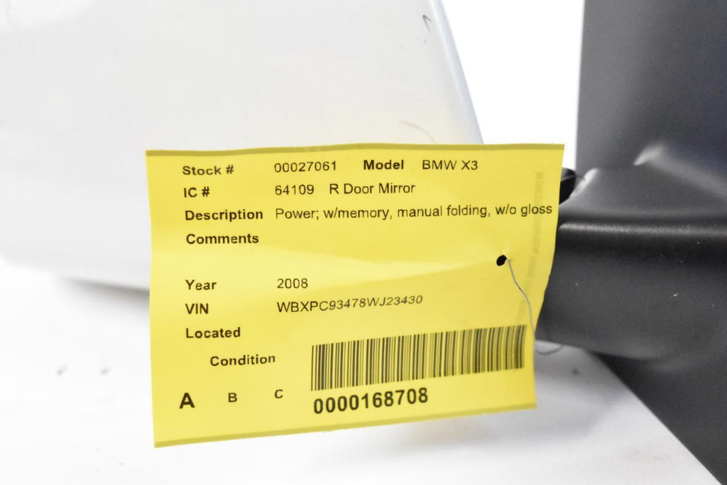 2007-2009 BMW X3 PASSENGER RIGHT SIDE POWER DOOR MIRROR WHITE 27061