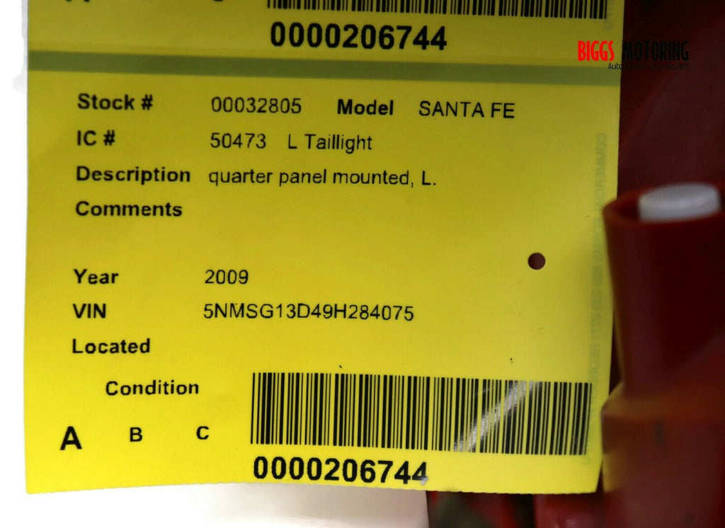 2007-2009 Hyundai Santa Fe Driver Left Side Rear Tail Light 32805