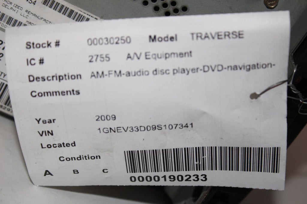 2009 GMC CHVEY TRAVERSE STEREO NAVIGATION RADIO CD PLAYER 20792738