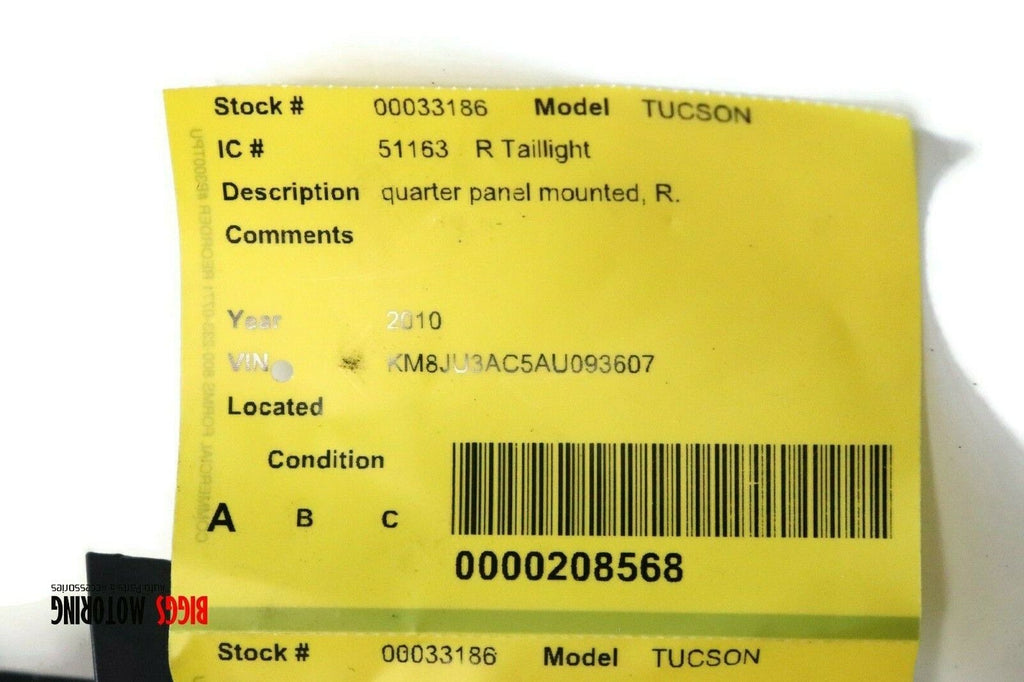 2010-2015 Hyundai Tucson Passenger Right Side Rear Tail Light 33186