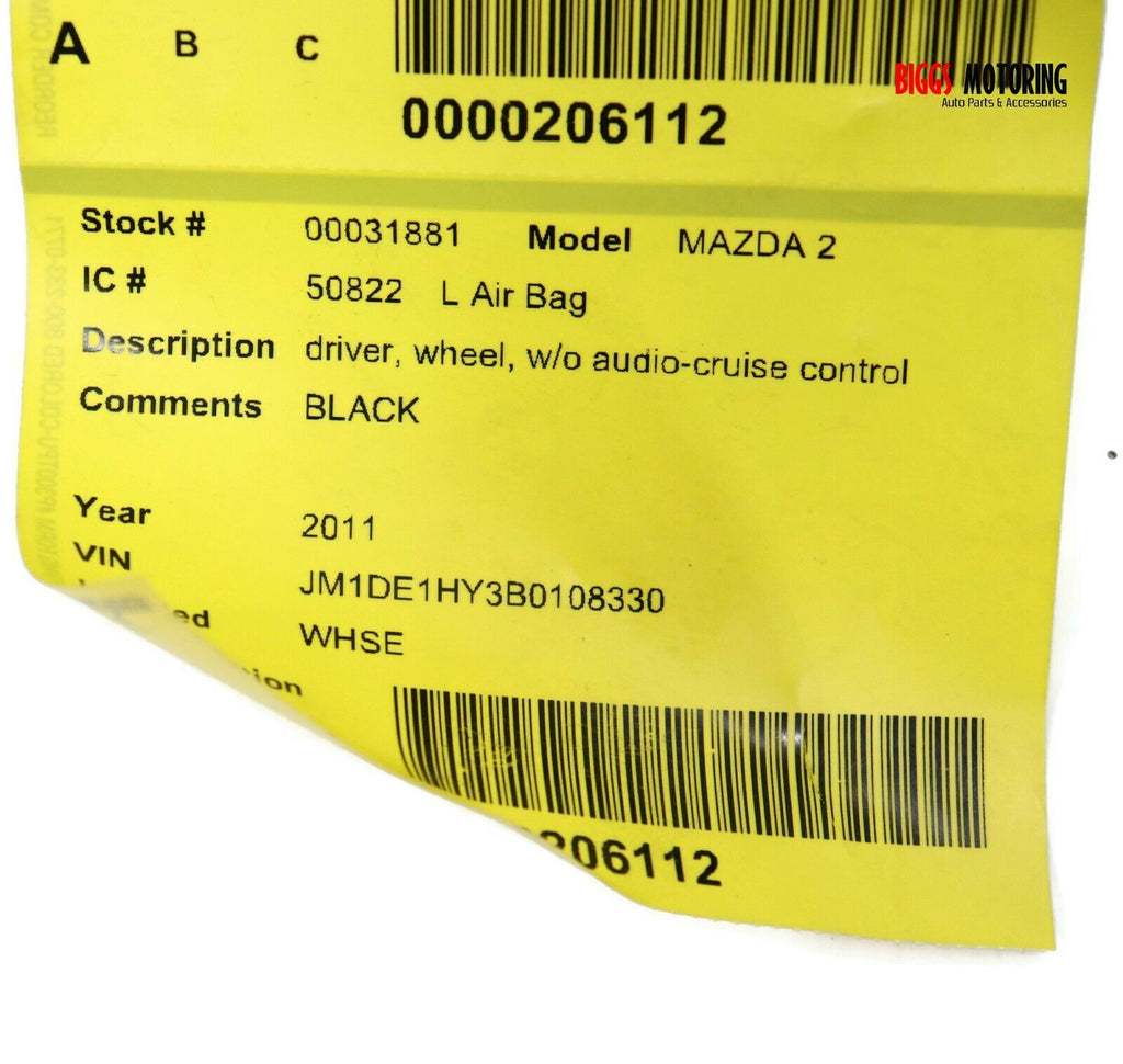 2011-2013 Mazda 2 Driver Side Steering Wheel Air Bag Black 31881